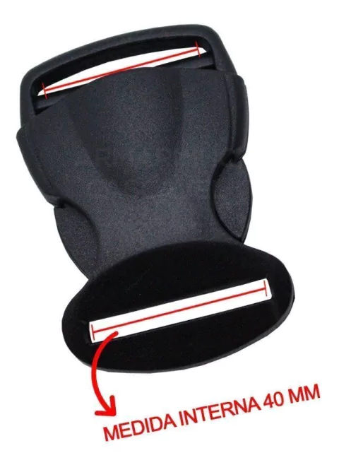 Os fechos de 40 mm de engate rápido são produzidos com plástico polipropileno e possuem um espaço para passar uma alça de 40 mm (4 cm), são resistentes e de fácil manuseio.